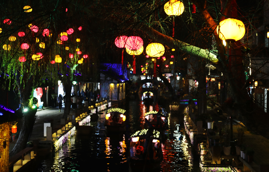 来自上海的搭客王女士带着孩子在主题灯组前拍照迷恋,她示意:“彩灯造型绘影绘声,非遗本领很精良,和周庄的水乡景致井水不犯河水,既有传统年味,又有江南特有的和睦境界,孩子看得相配进入,是一次很牢记的体验。”