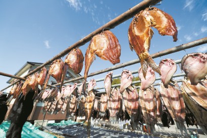 临比年末,在浙江诸暨,村民在曝晒鱼干。 新华社发