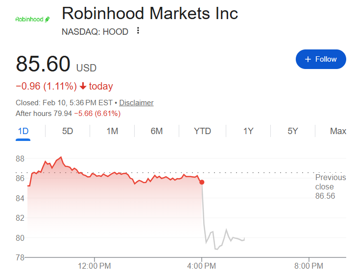 Robinhood第四季度净利润大幅下滑,尽管略高于分析师预期,但总营收未达预期激励投资者担忧。